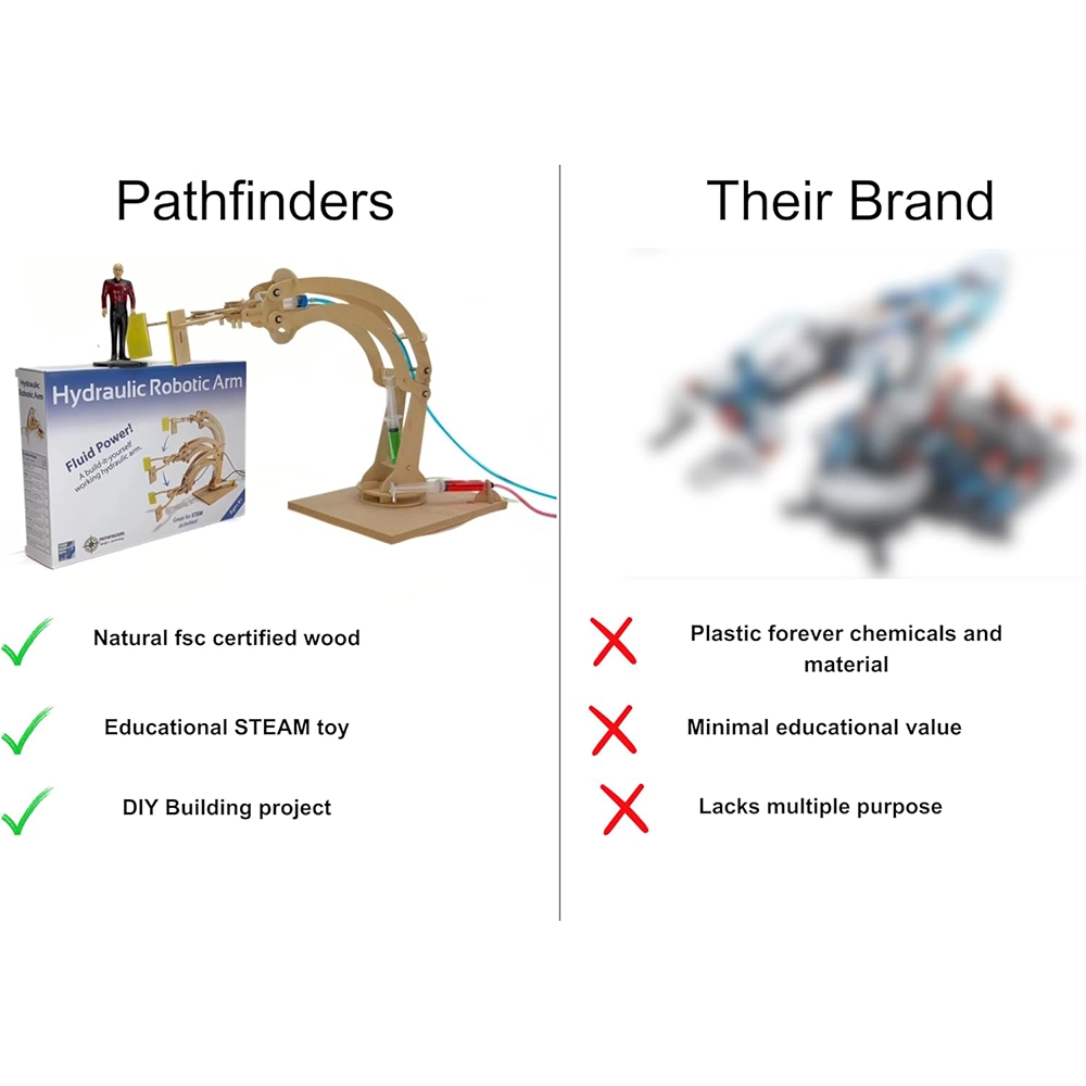 Pathfinders STEM Kit – Hydraulic Robotic Arm | Wooden Building Kit for Kids Ages 8-12