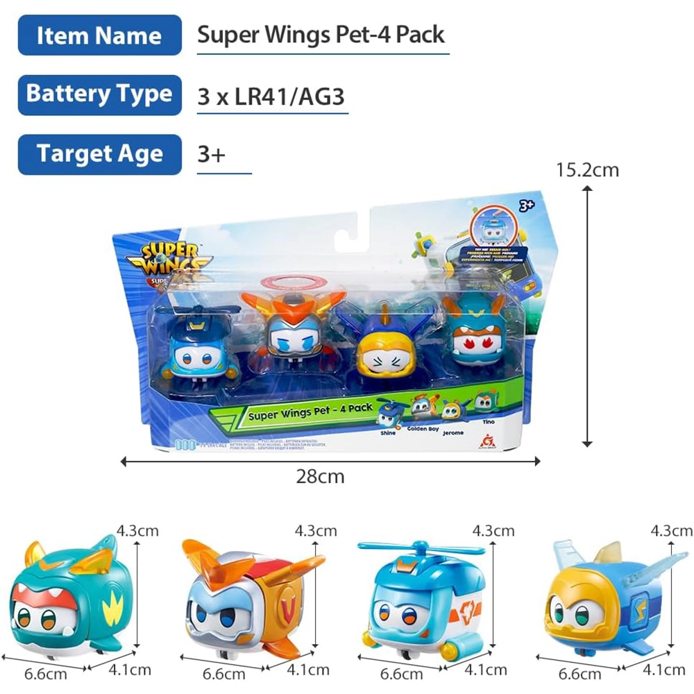 Super Wings Toys, 4 PCS Super Pet Sets – Glow and Face-Changing Transformer Toys Jerome Golden Boy Shine Tino Pet